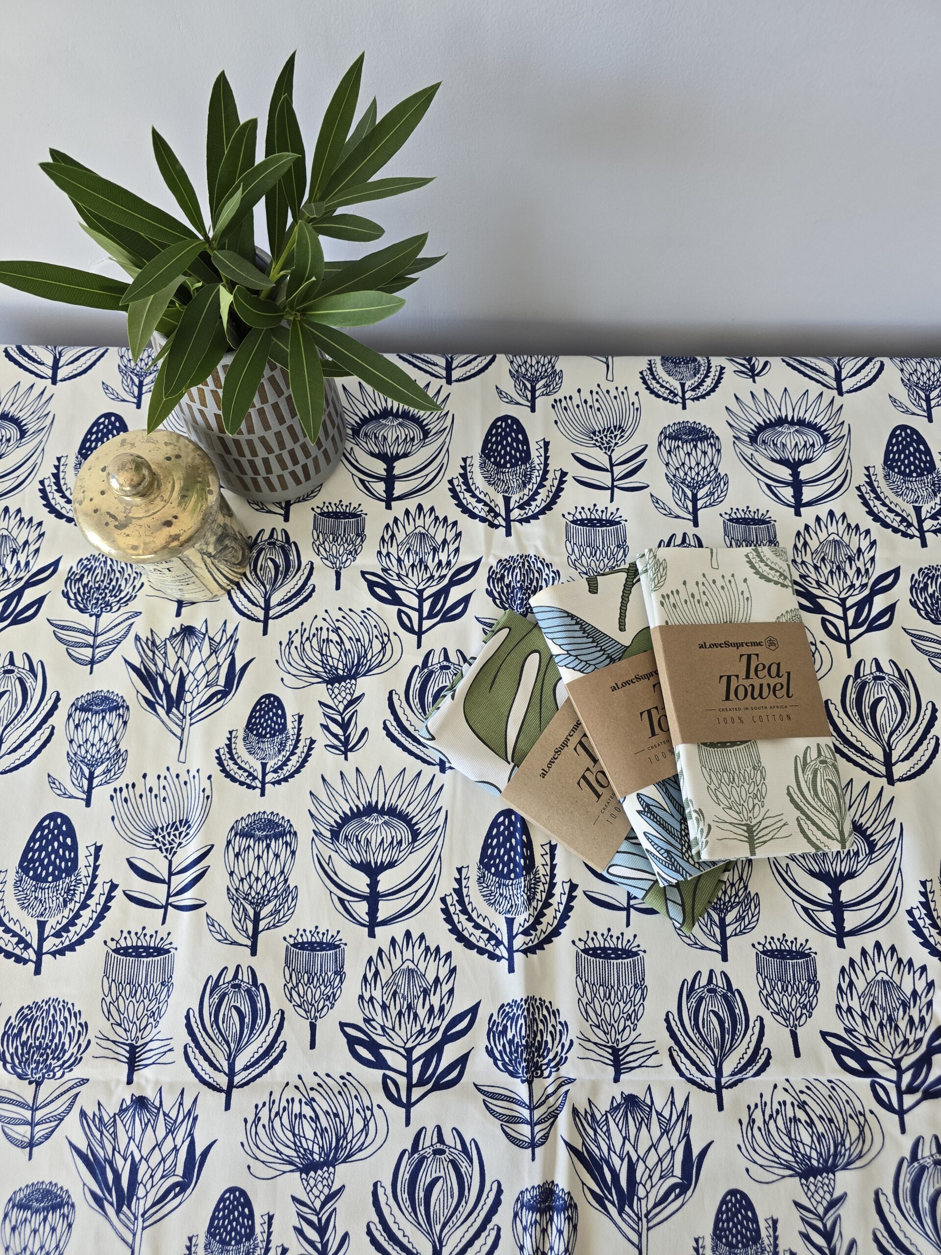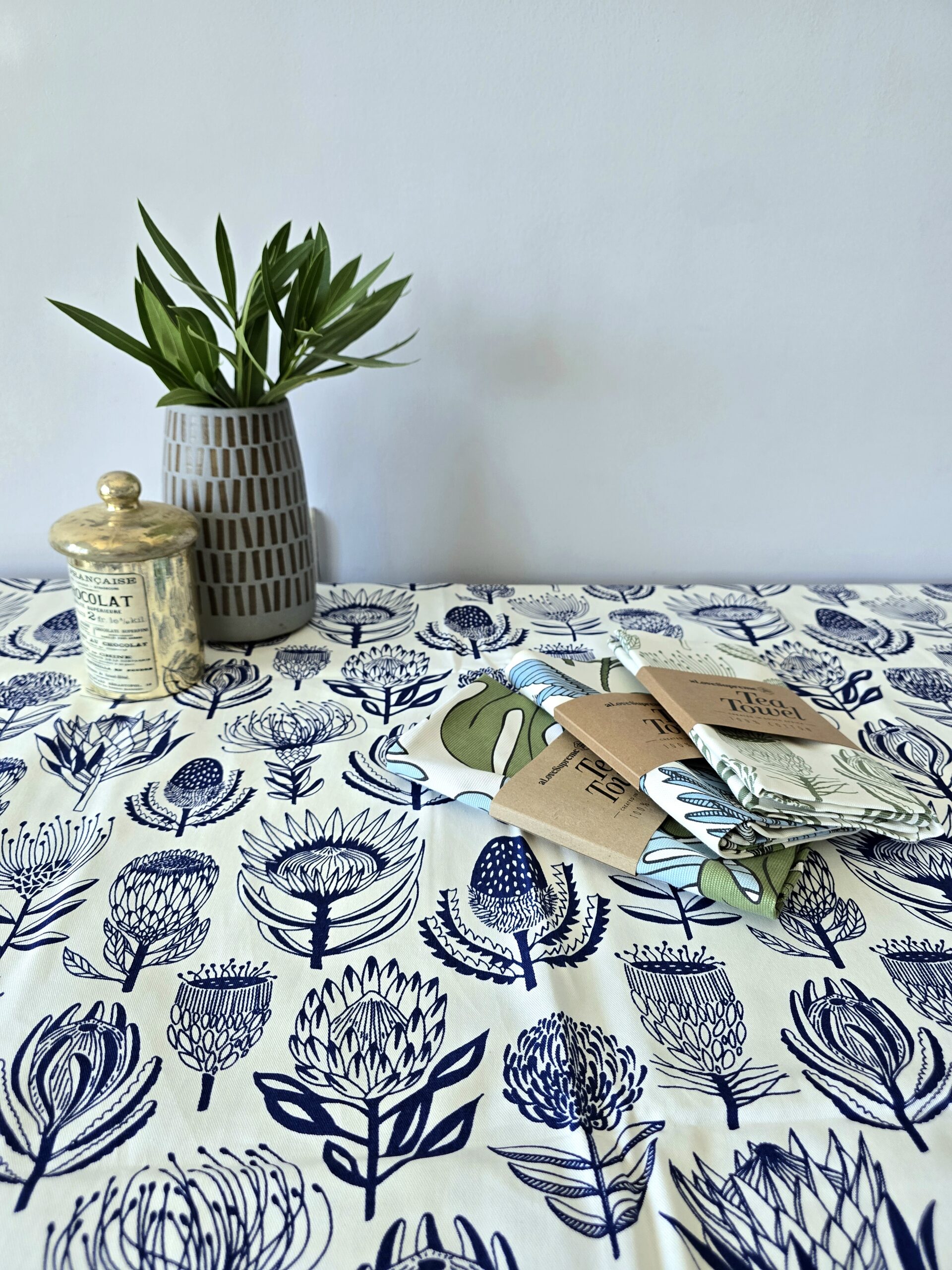 Protea (Blue on White)