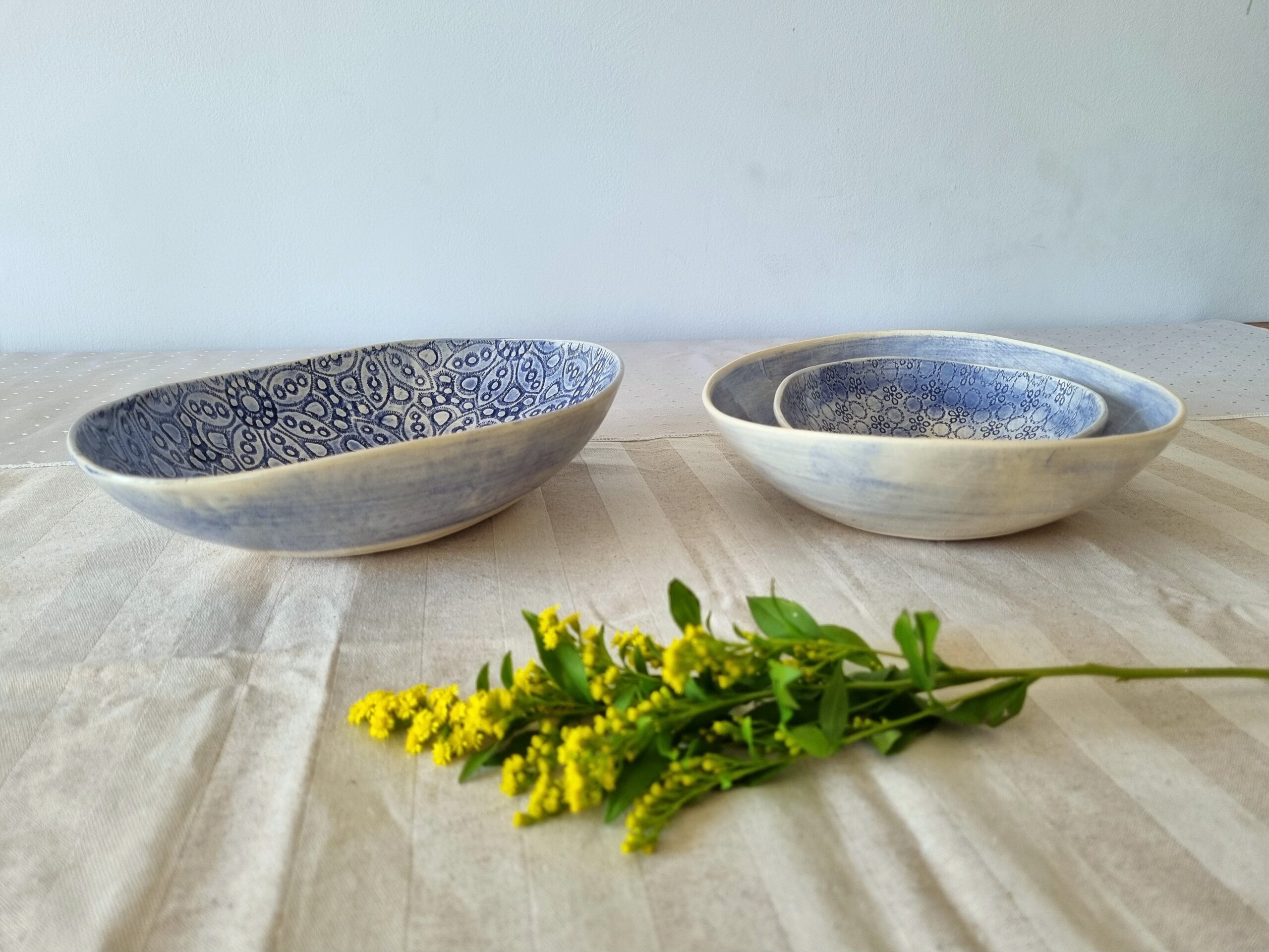 There are roughly 100 unique patterns marked into the clay by hand and painted a solid wash colour. We are unable to supply patterns by order. This variety reflects Wonki Ware’s unique creativity and charm, especially when mixed among multiple pieces. The pattern you receive may be a surprise, but we know you’ll love it! Due to the hand-crafted nature of this product, there may